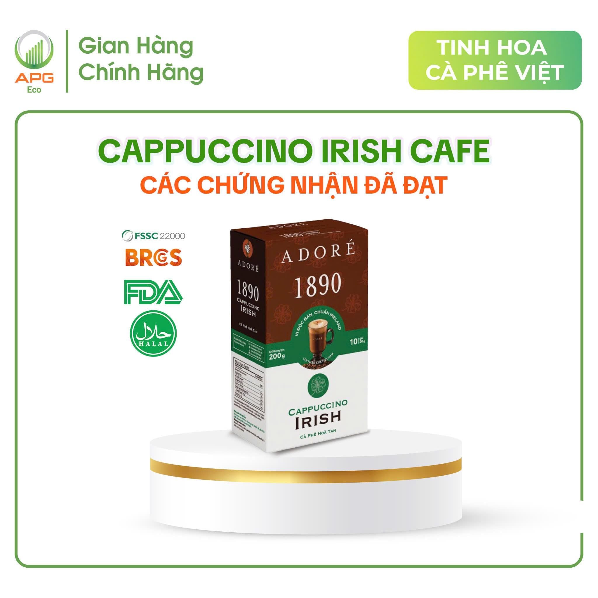 - Cà Phê Hòa Tan ADORÉ 1890 Cappuccino Irish Cafe Đậm Vị Espresso Kem Béo Thơm Ngậy Độc Đáo Giúp Tỉnh Táo Hộp 200g
