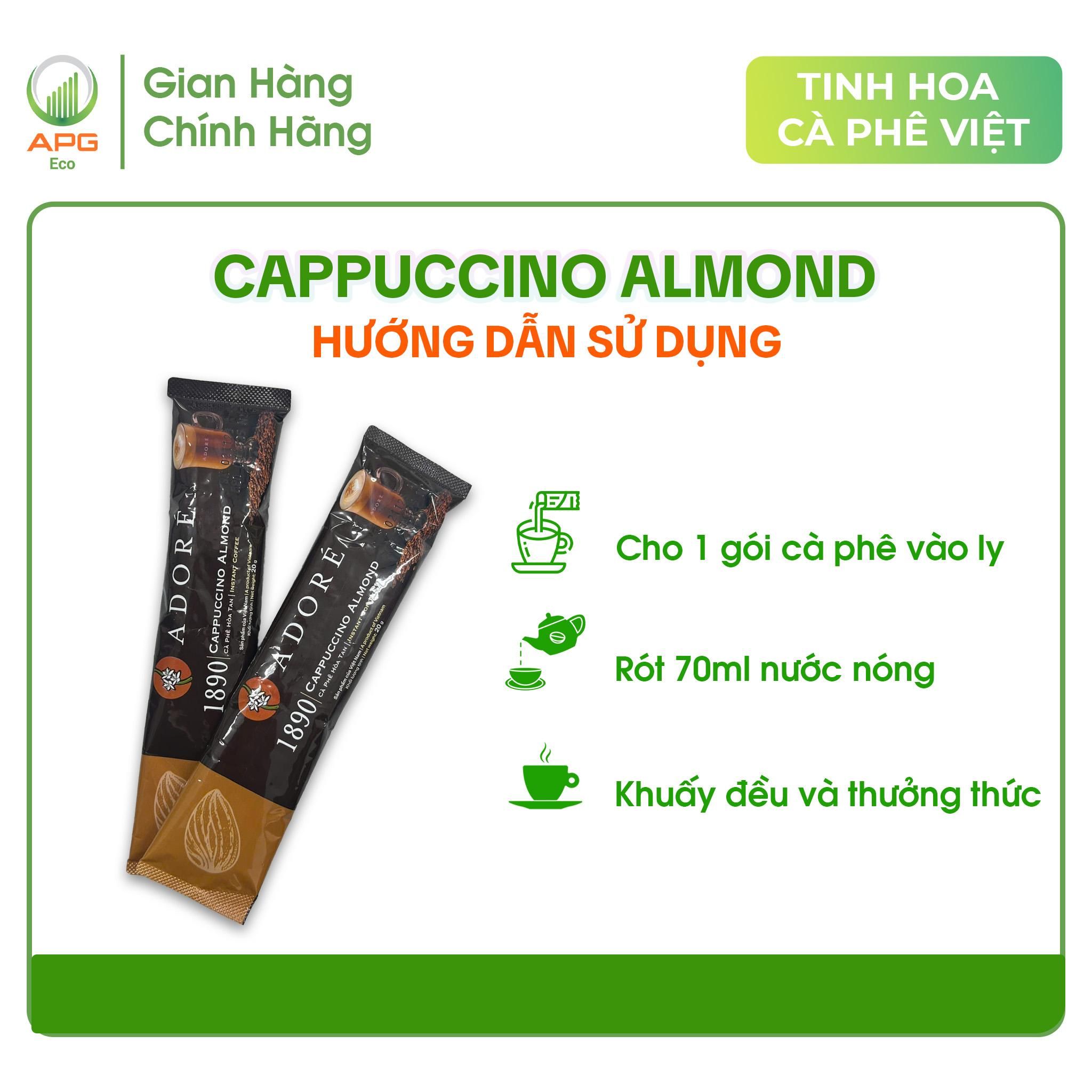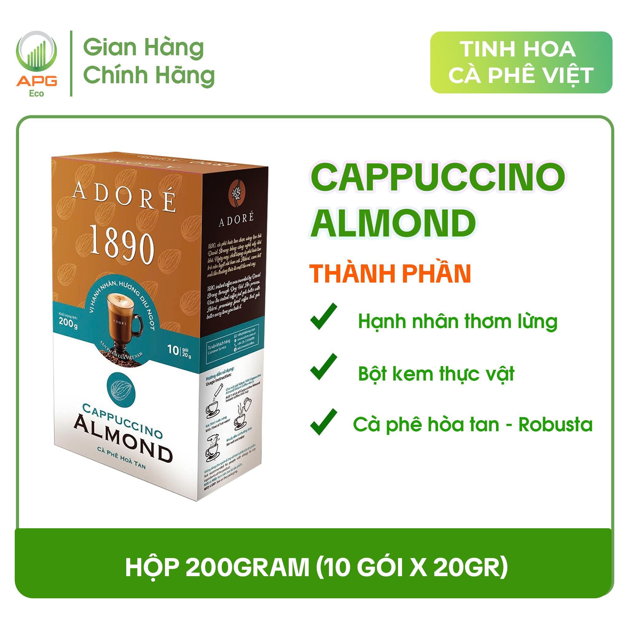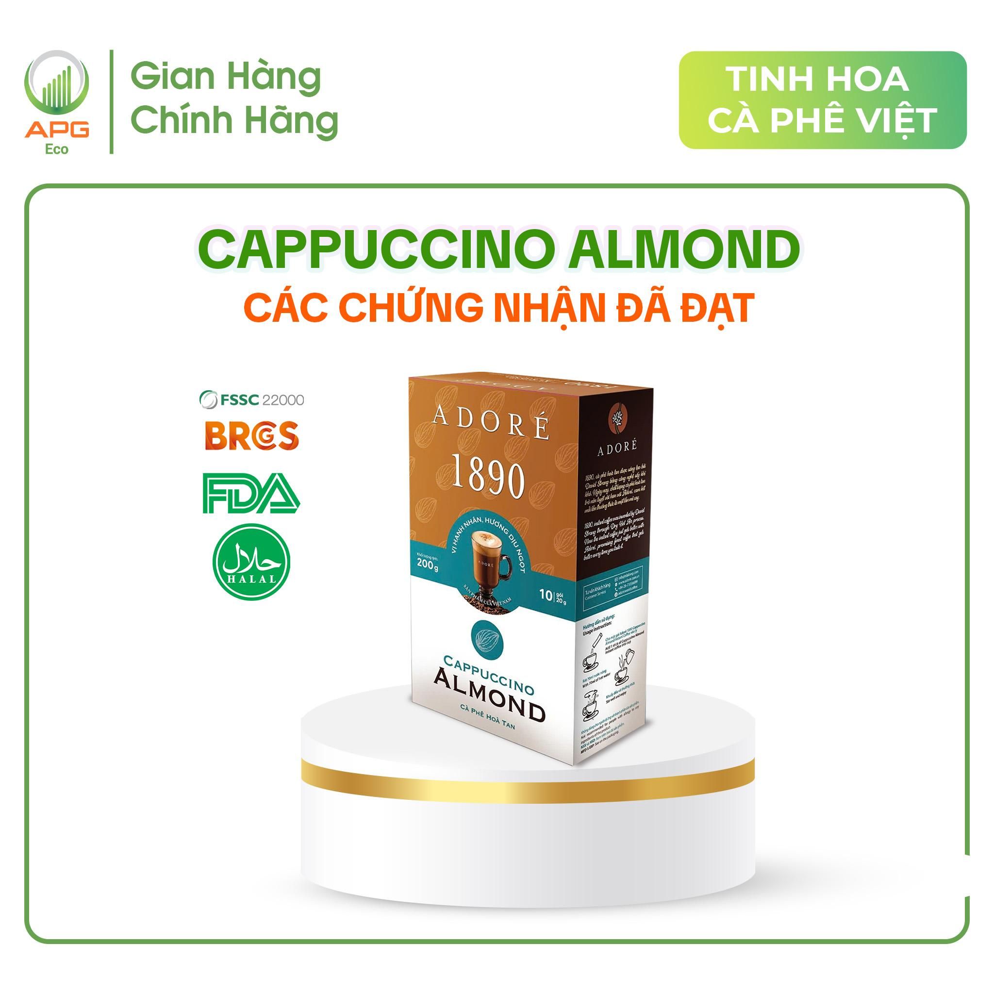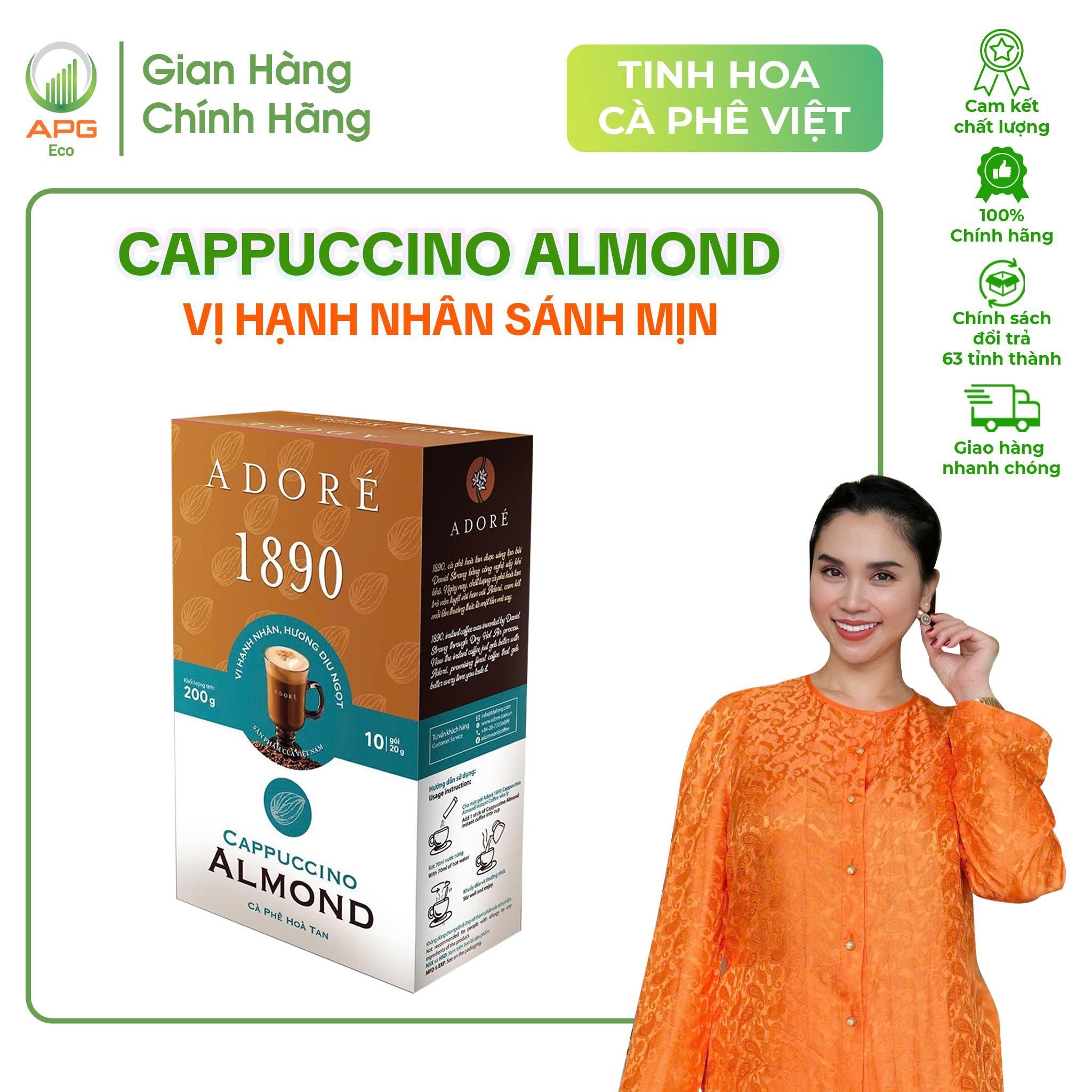 - Cà Phê Hòa Tan ADORÉ 1890 Cappuccino Almond Cafe 3in1 Vị Hạnh Nhân Sánh Mịn Thơm Ngon Độc Đáo Hộp 200g (10 gói x 20g)