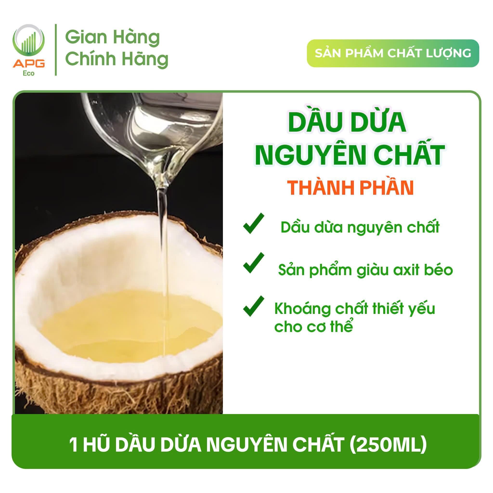Combo 1 Hũ và 1 Chai Dầu Dừa Nấu Thủ Công APG ECO Chiết Xuất Từ Đặc Sản Bến Tre, quy cách hũ/chai 250ML