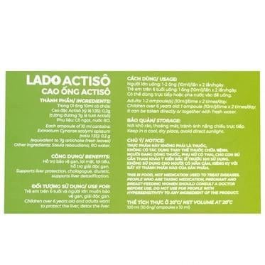 Cao ống Actisô Ladophar 10 ống X 10ml là thực phẩm bảo vệ sức khỏe được chiết xuất từ actisô tươi, hỗ trợ bảo vệ gan và giải độc gan, tăng cường chức năng gan, giúp lợi mật, lợi tiểu, giảm cholesterol trong máu.