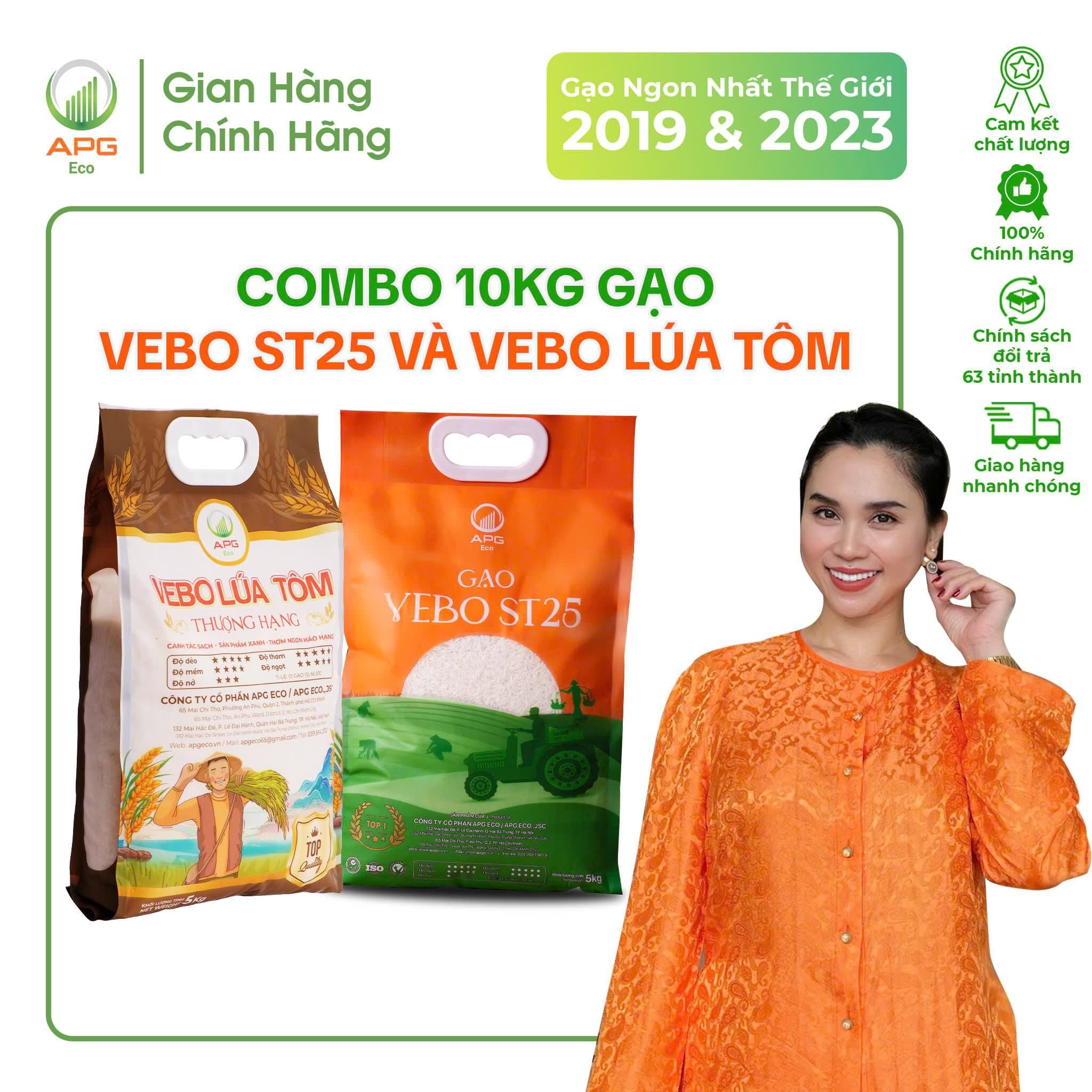 Combo 10Kg Gạo VEBO ST25 Và VEBO Lúa Tôm Thượng hạng [MỚI] APG ECO, Hữu Cơ (Tổng nhận 10Kg)