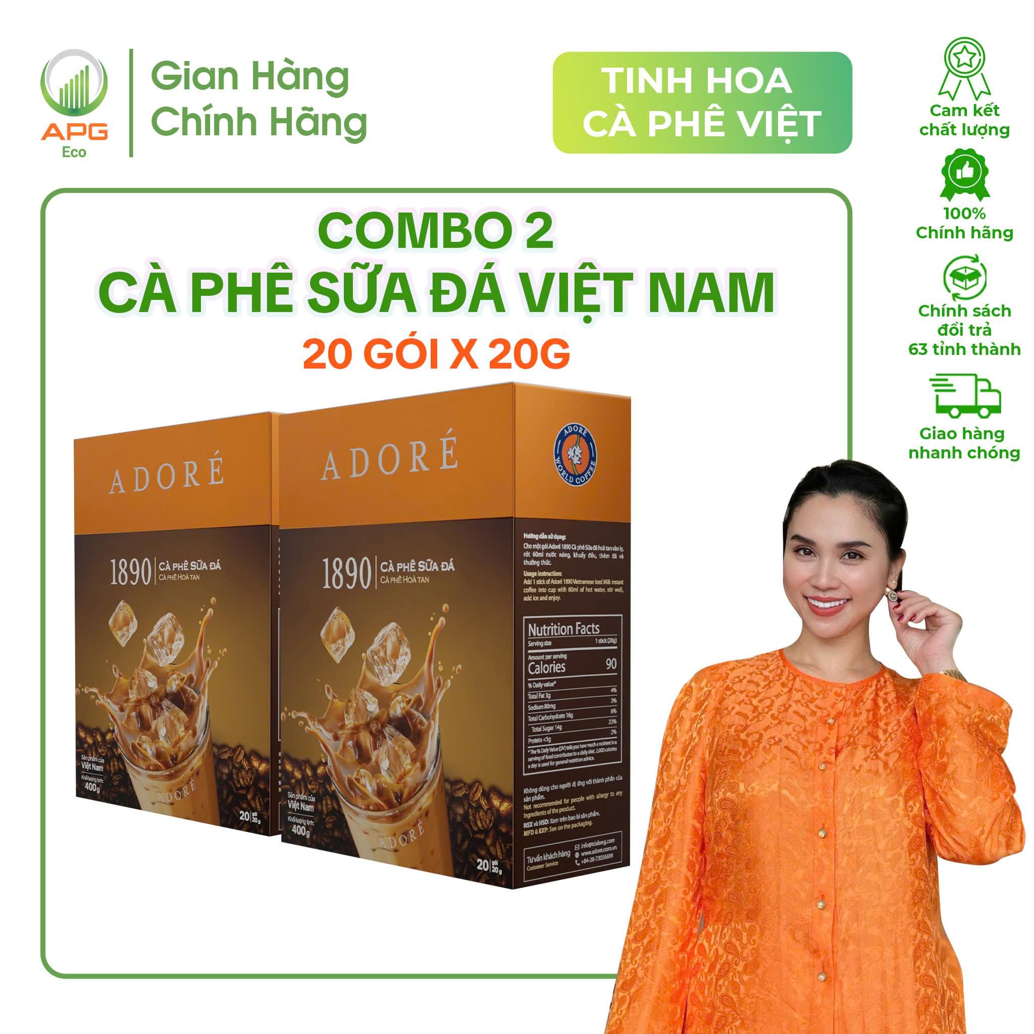 Combo 2 Hộp Cà Phê Sữa Đá Việt Nam ADORÉ 1890 Cafe Hòa Tan Vị Truyền Thống Đậm Đà Hộp 400g (20gr x 20 gói)