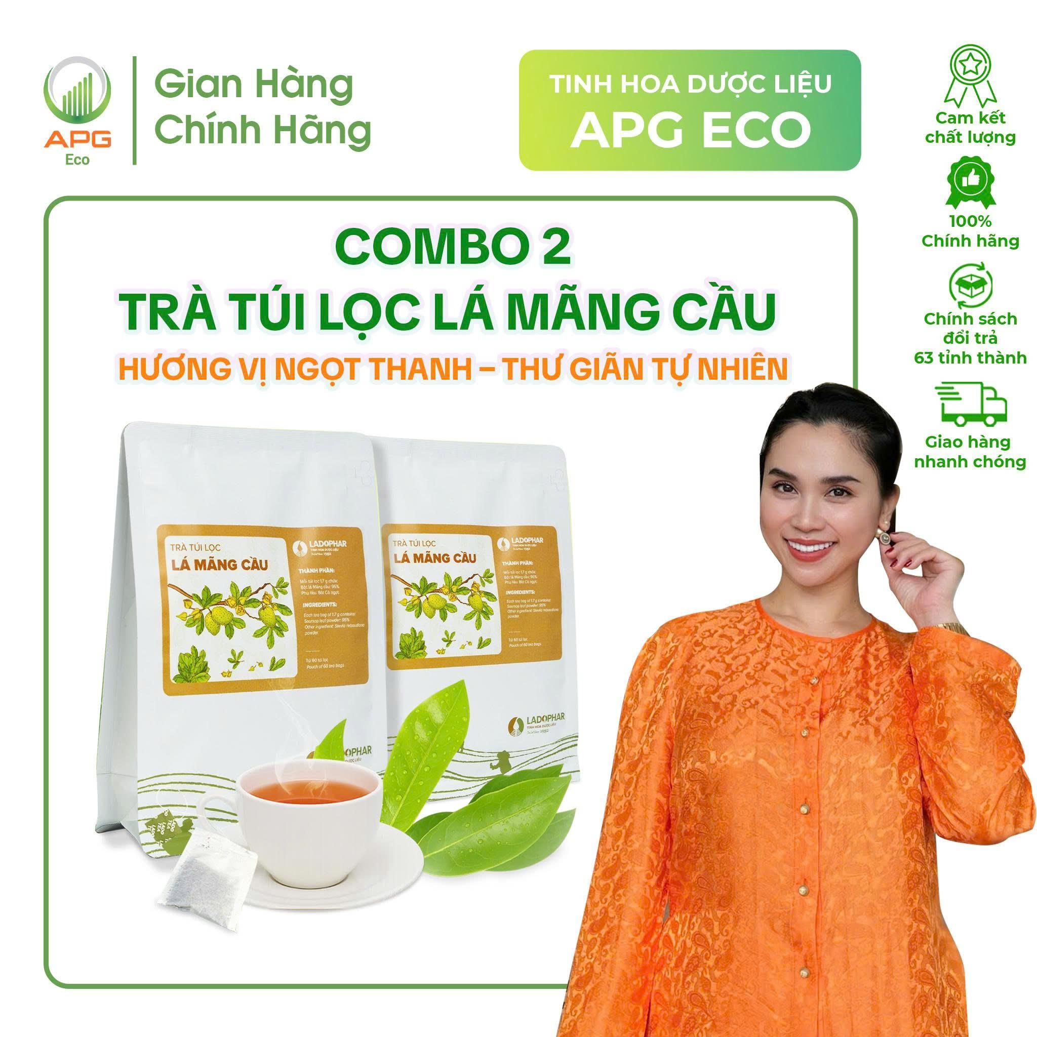 Combo 2 Túi Trà Túi Lọc Lá Mãng Cầu Hương Vị Ngọt Thanh - Thư Giãn Tự Nhiên, quy cách túi gồm 60 gói x 1,7gr