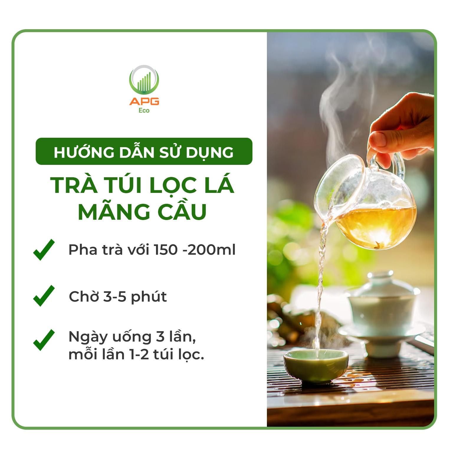 THÀNH PHẦN: Từ 95% lá mãng cầu kết hợp cỏ ngọt tự nhiên.