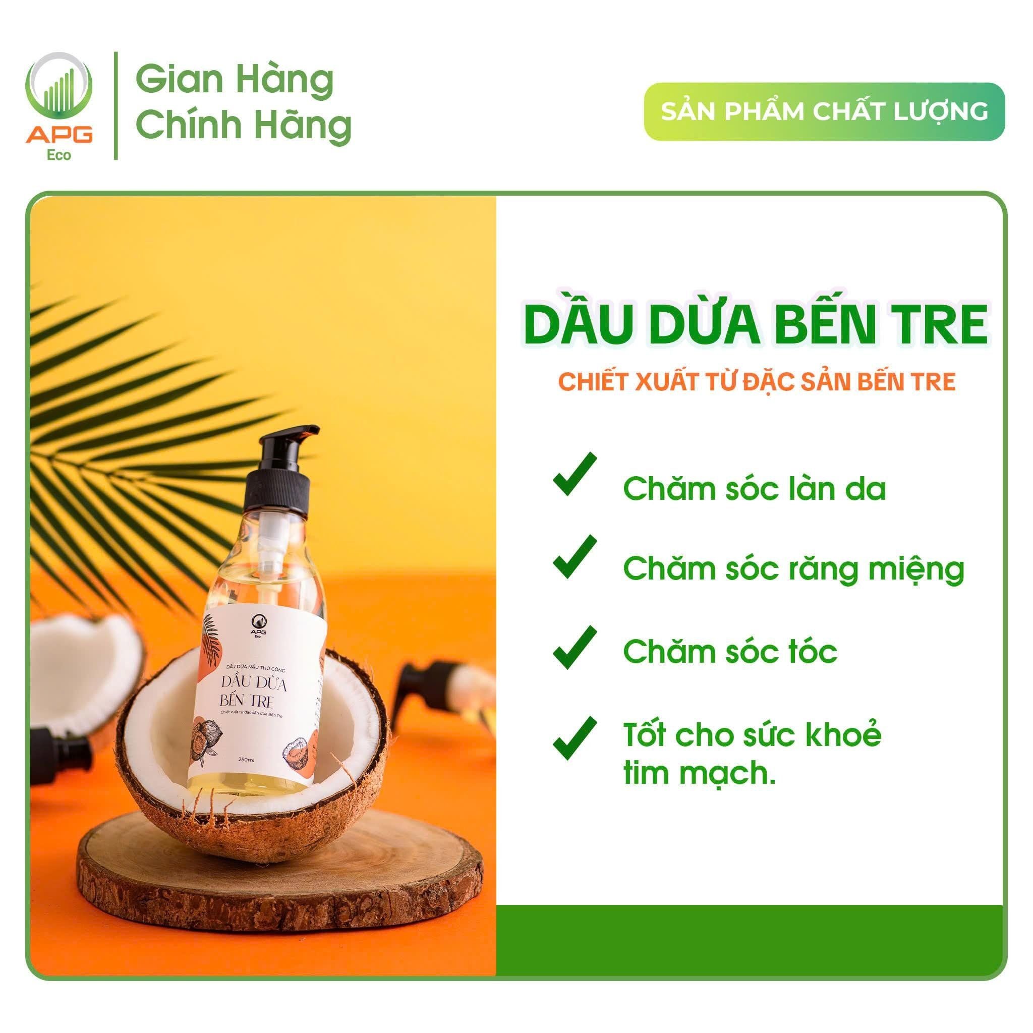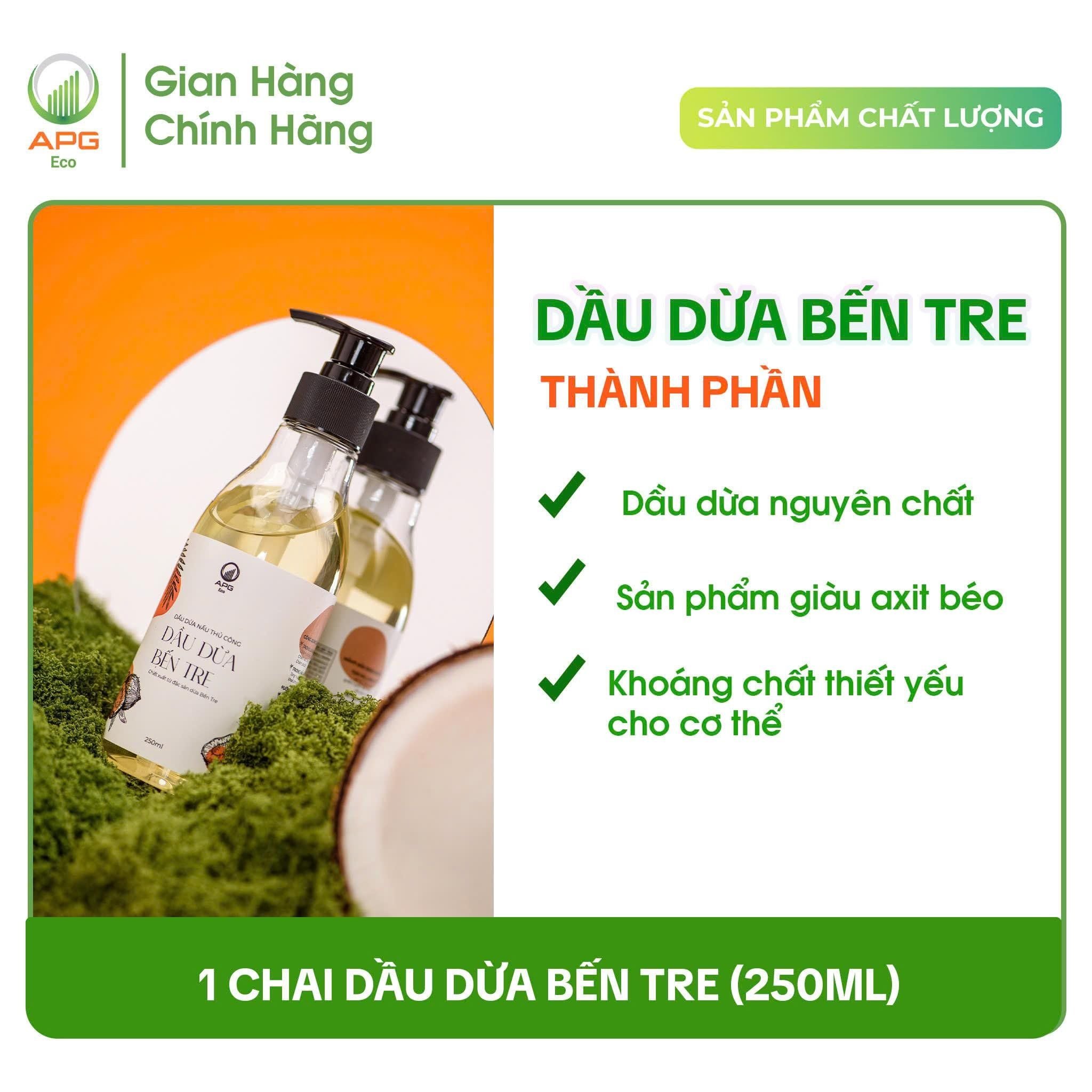 - Dầu Dừa Nấu Thủ Công APG ECO Chiết Xuất Từ Đặc Sản Bến Tre Chai 250ML