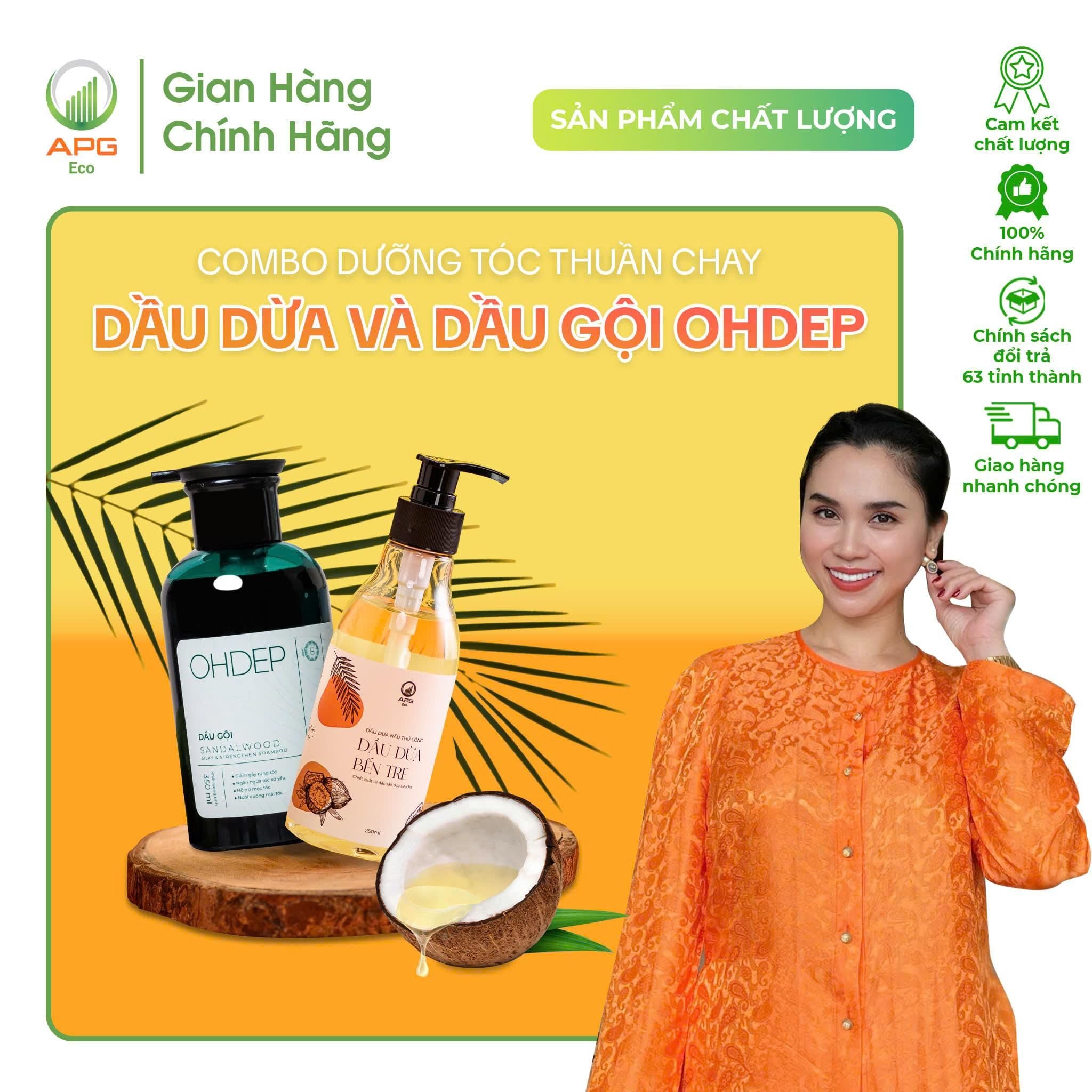 COMBO DƯỠNG TÓC THUẦN CHAY - Dầu Dừa Nấu Thủ Công APG ECO và DẦU GỘI OHDEP chiết xuất từ tinh dầu đàn hương 350ML