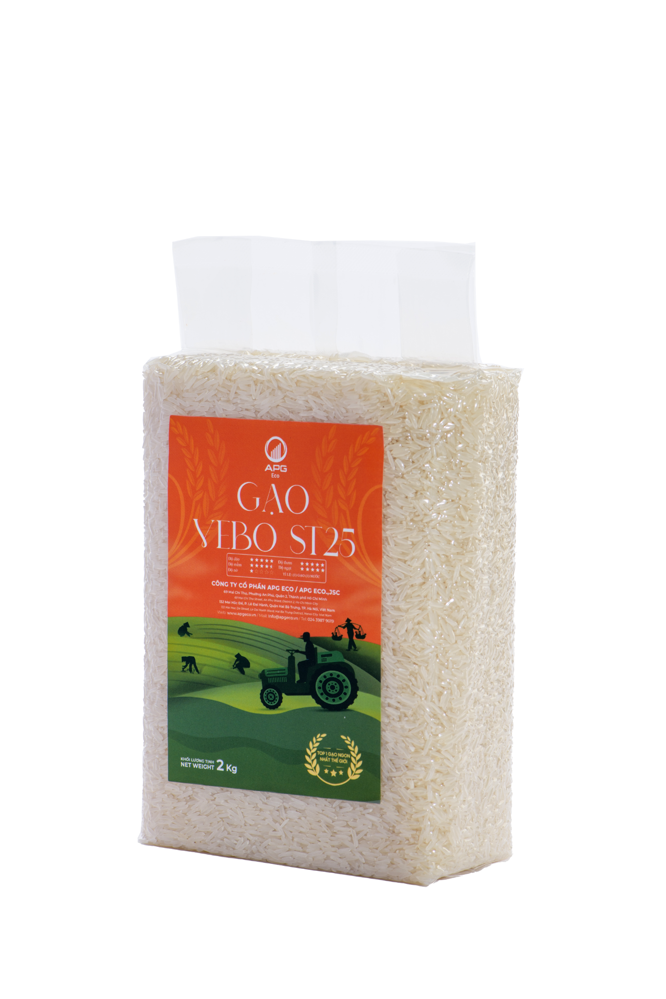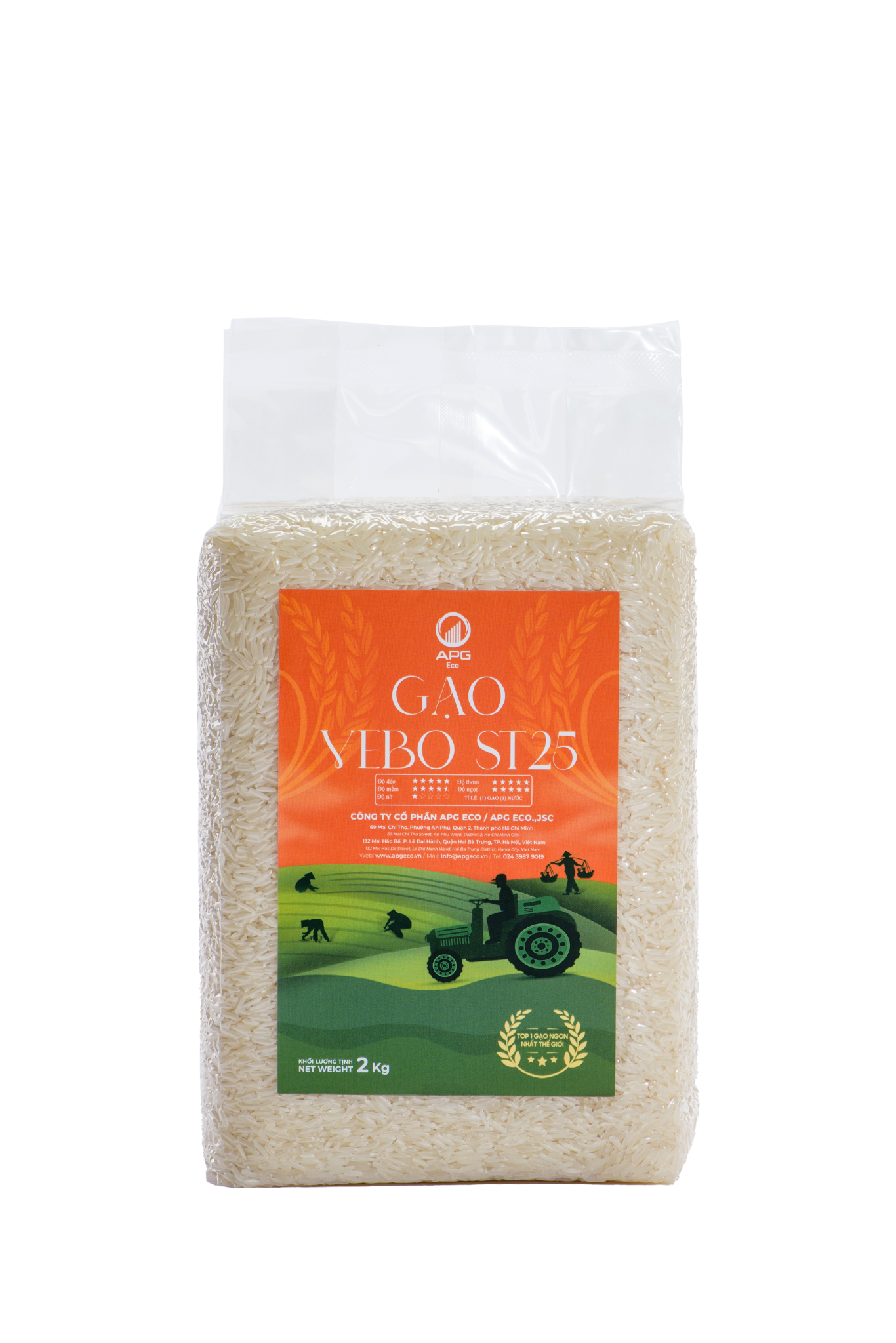 VEBO ST25 - một dòng gạo thượng hạng mới ra đời - tự hào là loại gạo "ngon - sạch - đẹp”. Sản phẩm độc quyền này là kết quả của tình yêu và đam mê với nông nghiệp, được tạo nên từ sự kết hợp hoàn hảo giữa APG ECO - một phần của hệ sinh thái công ty tài chính chứng khoán APG và nhà máy gạo xuất khẩu top 5 Việt Nam ANGIMEX đã làm nên một “tinh hoa” trong “làng gạo” - một loại gạo đạt chuẩn xuất khẩu, nhưng vẫn giữ được danh tiếng vốn có của dòng gạo ST25 đặc trưng. Mỗi hạt gạo trắng ngần chứa đựng trọn vẹn hương thơm, dinh dưỡng và cả một câu chuyện sâu sắc về nghị lực, đam mê và tình yêu với quê hương đất nước. Bởi vậy mà VEBO ST25 (mang ý nghĩa “Về Bờ”) không chỉ đơn thuần là một loại nông sản Việt, mà đó còn là cầu nối tinh thần giữa người trẻ và cội nguồn văn hóa, như một mong muốn được đồng hành cùng thế hệ tương lai trên con đường chạm đích thành công