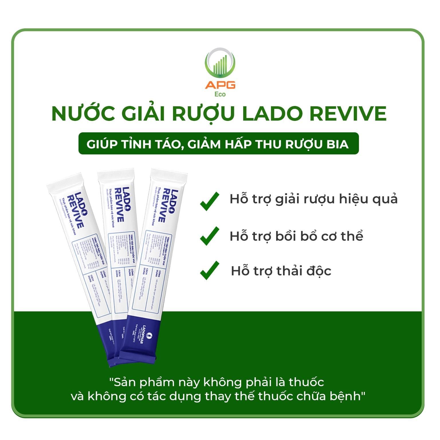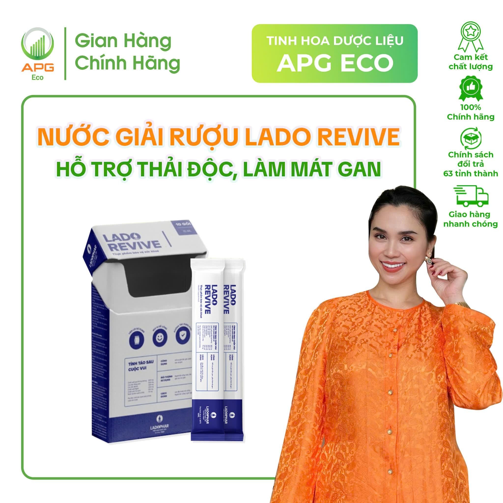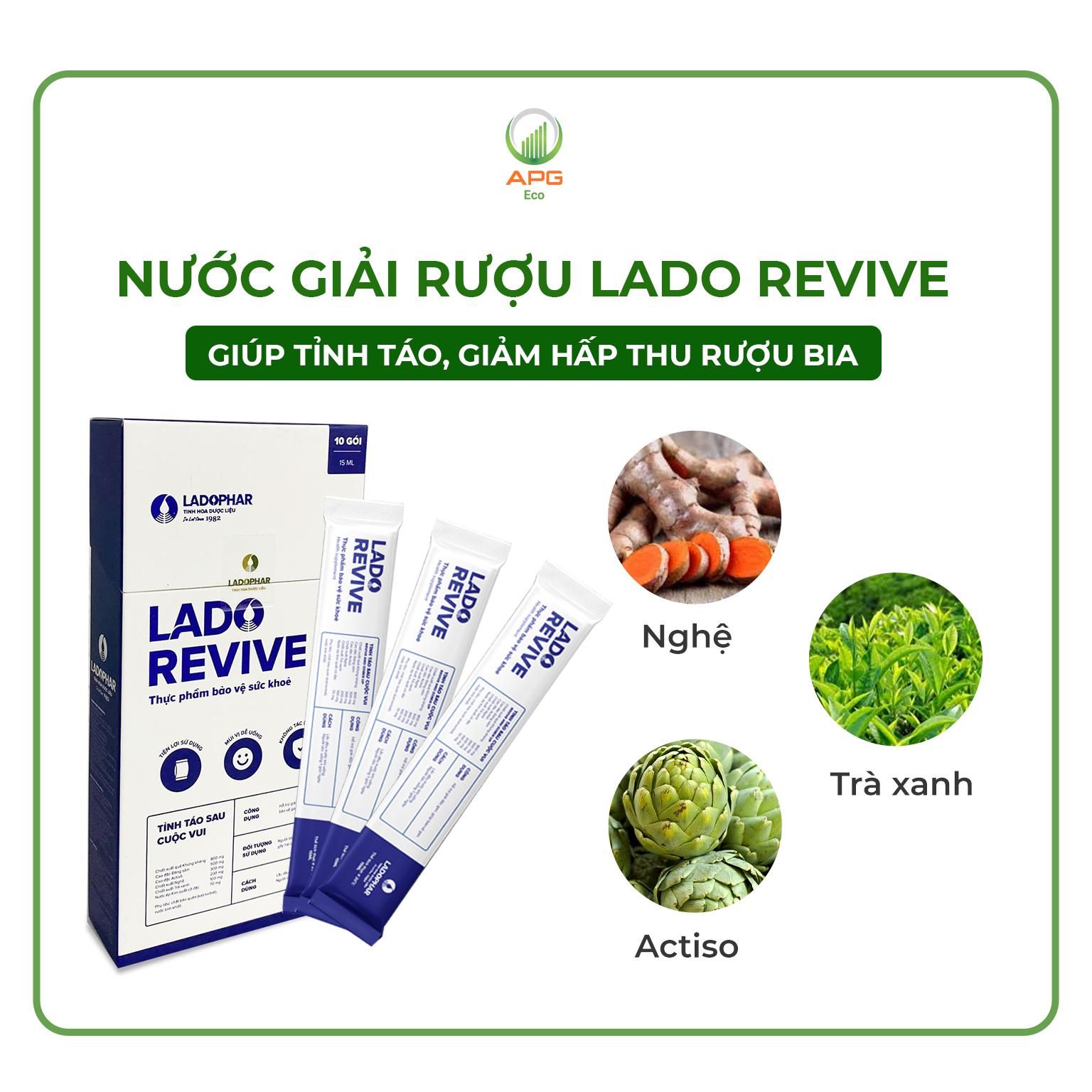 - Nước giải rượu Lado Revive - Thuốc uống hỗ trợ thải độc, giải rượu, Quy cách 15mlx10 gói/Hộp