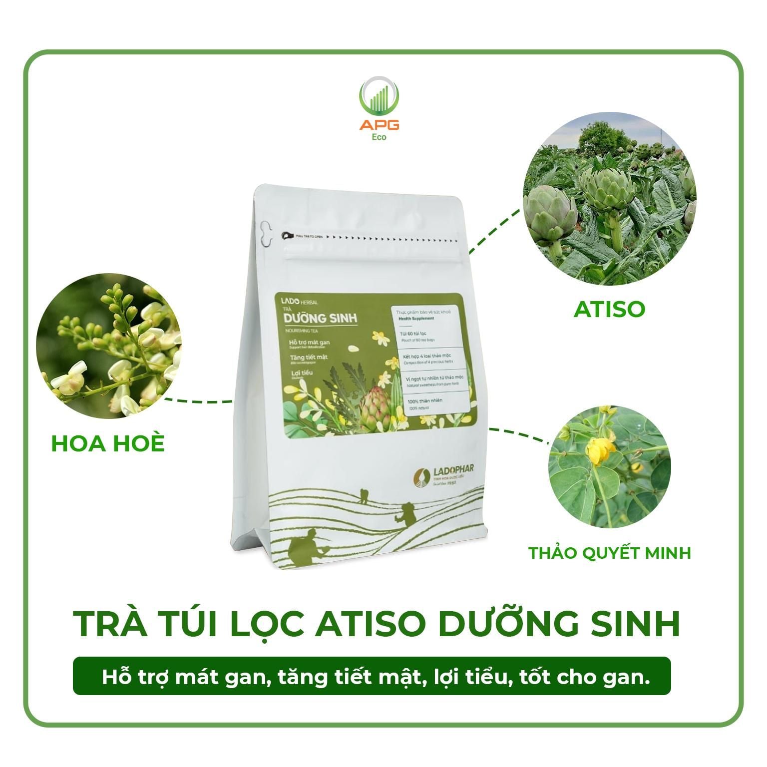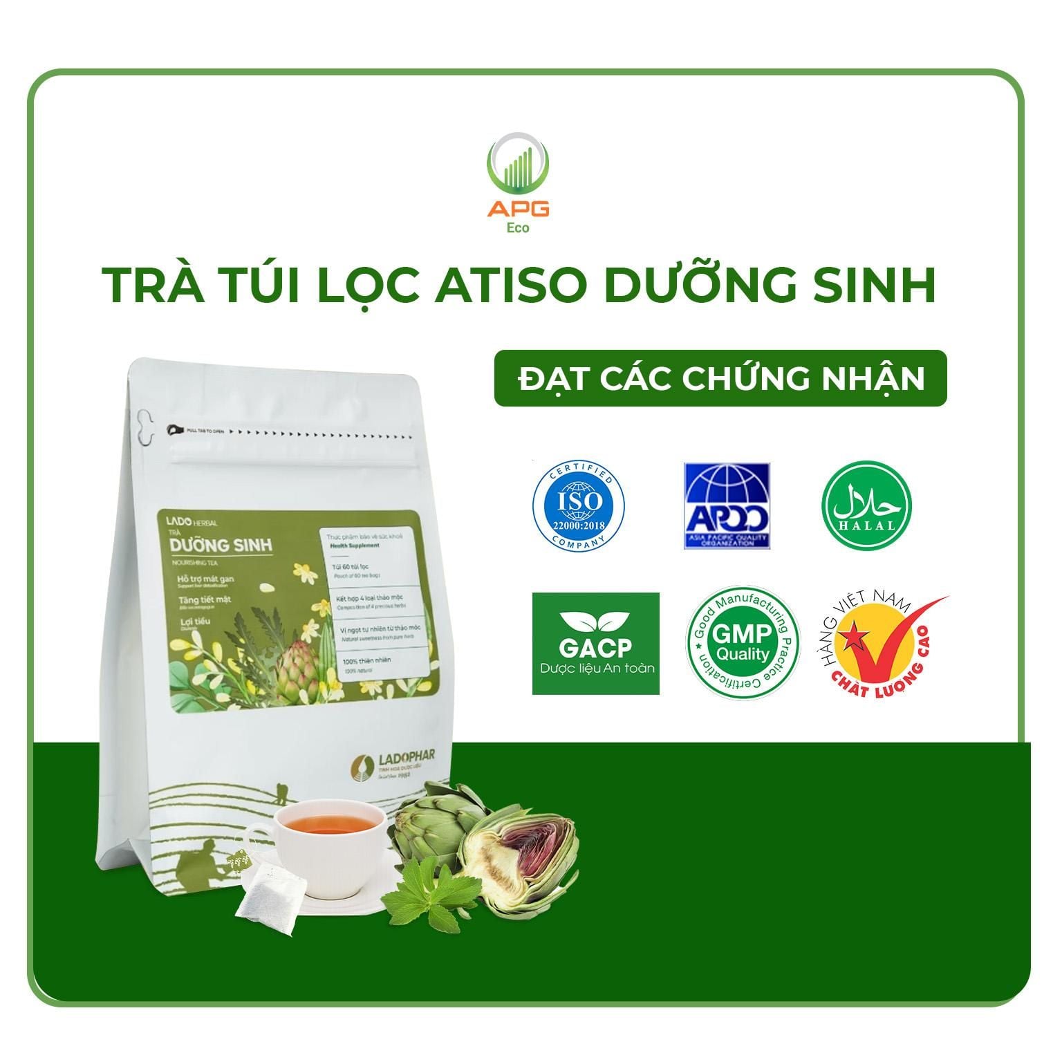 - Trà Túi Lọc Atiso Dưỡng Sinh Dành Cho Lối Sống An Nhiên & Khoẻ Mạnh, quy cách túi gồm 60 gói x 2gr