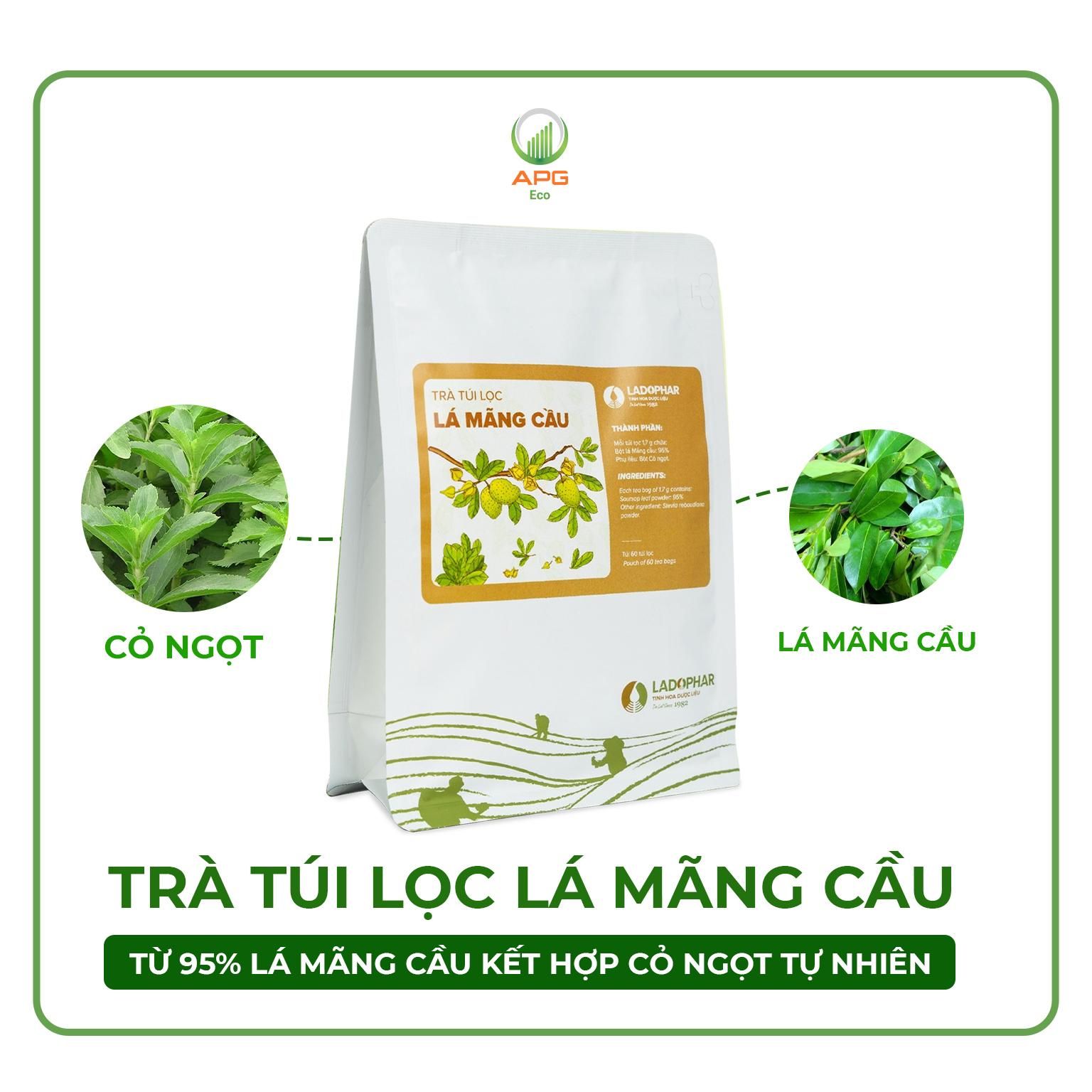 - Trà Túi Lọc Lá Mãng Cầu Hương Vị Ngọt Thanh - Thư Giãn Tự Nhiên, quy cách túi gồm 60 gói x 1,7gr